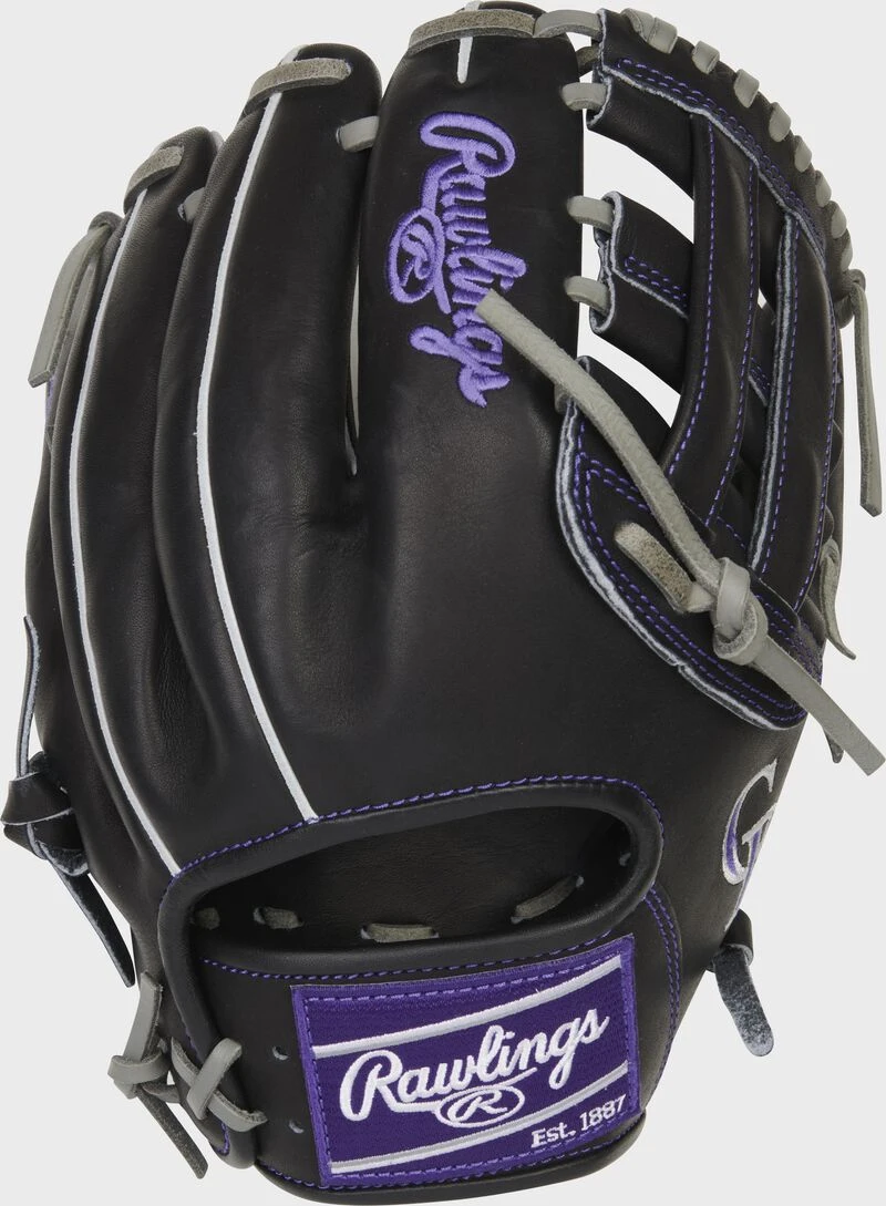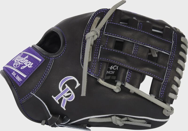 This unique HOH infield glove features a classic black design accented perfectly by the gray accents and Rockies logo embroidered on the thumb. As a result, this glove is a top-notch gamer, and the perfect addition to our MLB Team logo glove collection great for any collector too! The 11.5-inch glove was constructed in our 200 pattern, popular for it’s deep, round pocket promoting lightning fast ball transfers and great versatility across the infield. It also has our popular Pro H-web preferred by many of the best infielders.