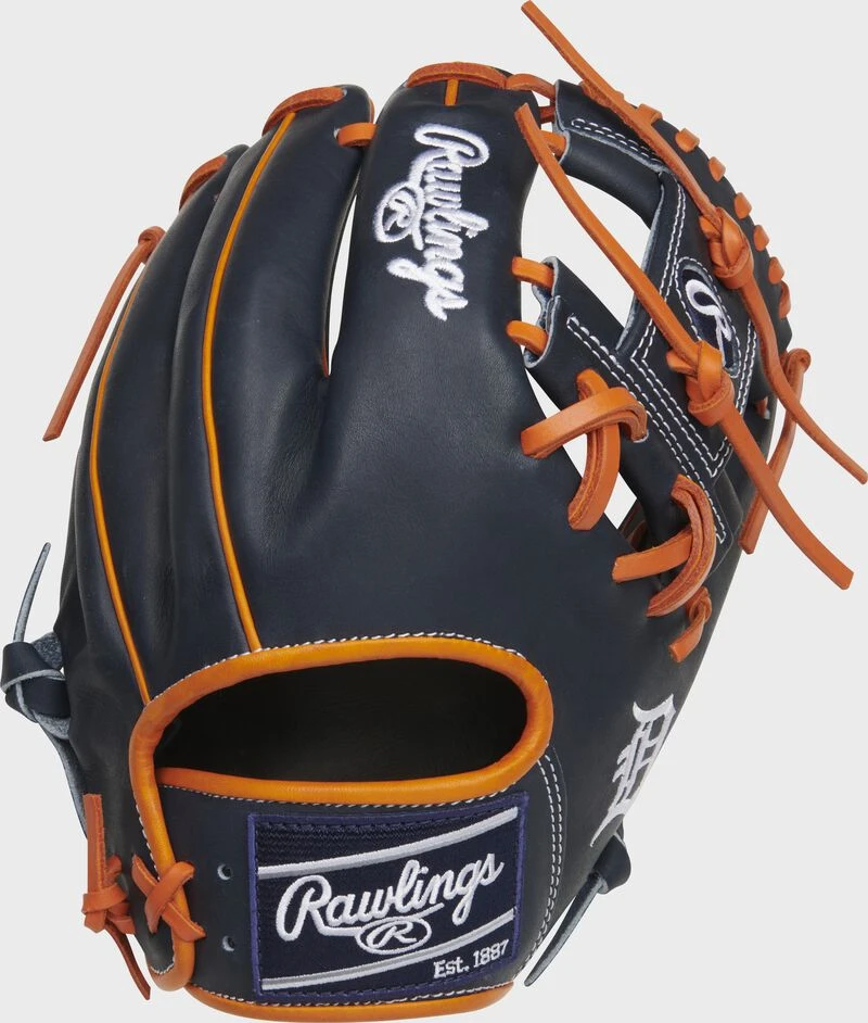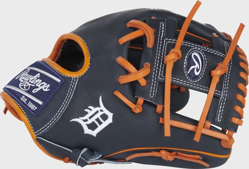 This unique HOH infield glove features a classic navy design accented perfectly by the orange accents and Tigers logo embroidered on the thumb. As a result, this glove is a top-notch gamer, and the perfect addition to our MLB Team logo glove collection great for any collector too! The 11.5-inch glove was constructed in our 200 pattern, popular for it’s deep, round pocket promoting lightning fast ball transfers and great versatility across the infield. It also has our popular Pro I-web preferred by many of the best infielders.