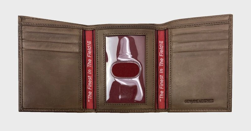 The Rawlings Play Ball tri-fold wallets are crafted from premium leather for superior quality. The unique leather texture of these wallets are complemented perfectly by the embossed Rawlings logo and baseball emblem in the bottom corner. In addition, the Play Ball are equipped with multiple credit card slots, an interior cash pocket, and a clear ID window while it also blocks RFID to keep your cards safe. Don’t look any further for a stylish, quality tri-fold wallet, order yours today!